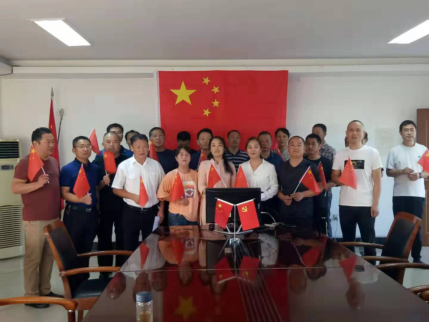 当《义勇军进行曲》音乐响起,阜阳市盐业人挥舞着五星红旗齐声高唱“起来,不愿做奴隶的人们……”,雄壮嘹亮的国歌声,在党员活动室内久久回荡。随后,大家又齐声高歌《歌唱祖国》,“五星红旗迎风飘扬,胜利歌声多么响亮”,唱出对中华人民共和国成立70周年最美好的祝福和热爱。