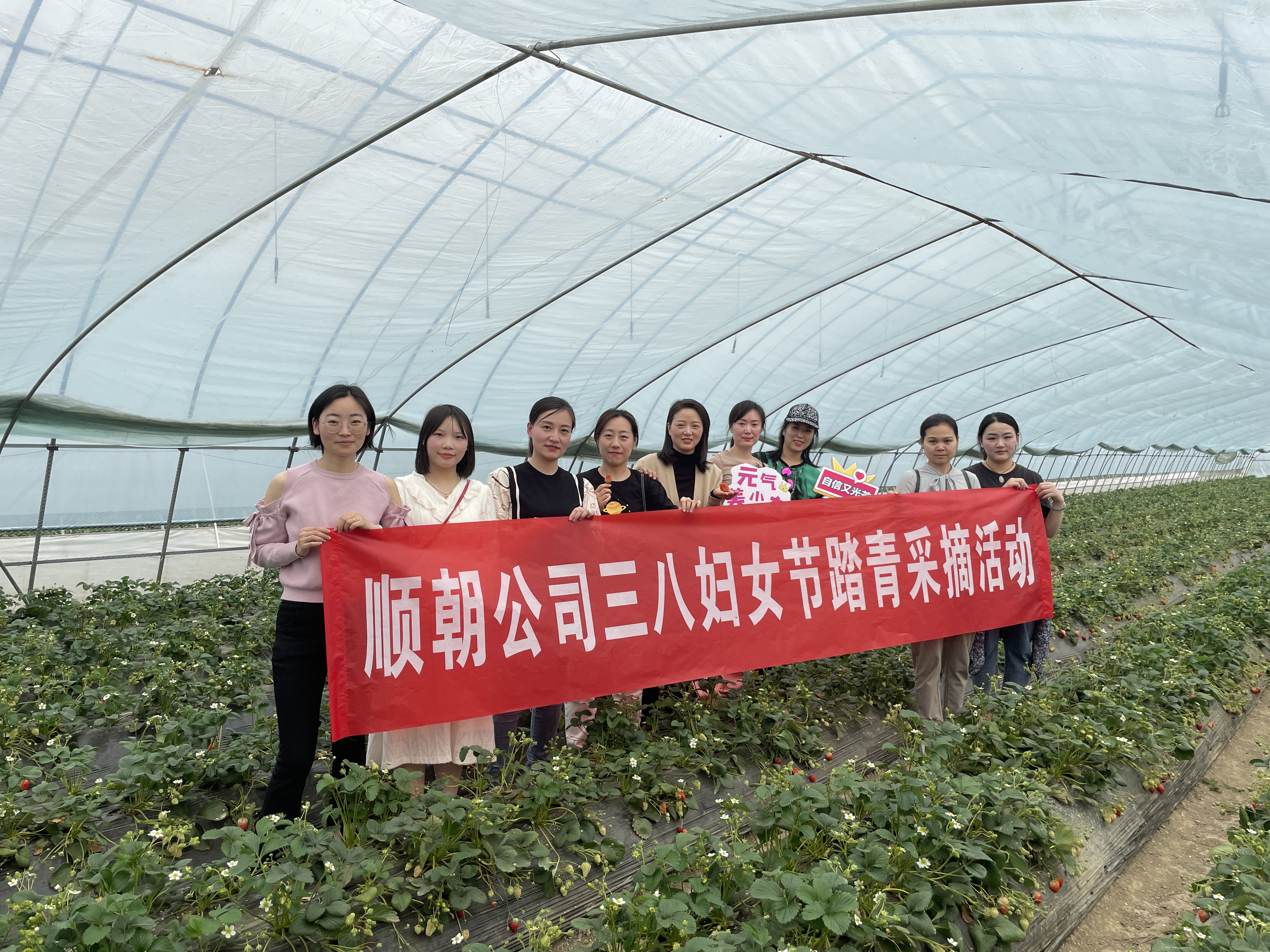为庆祝三八妇女节,丰富女职工的业余文化生活,3月8日下午,顺朝公司组织女职工开展户外踏青采摘草莓活动。