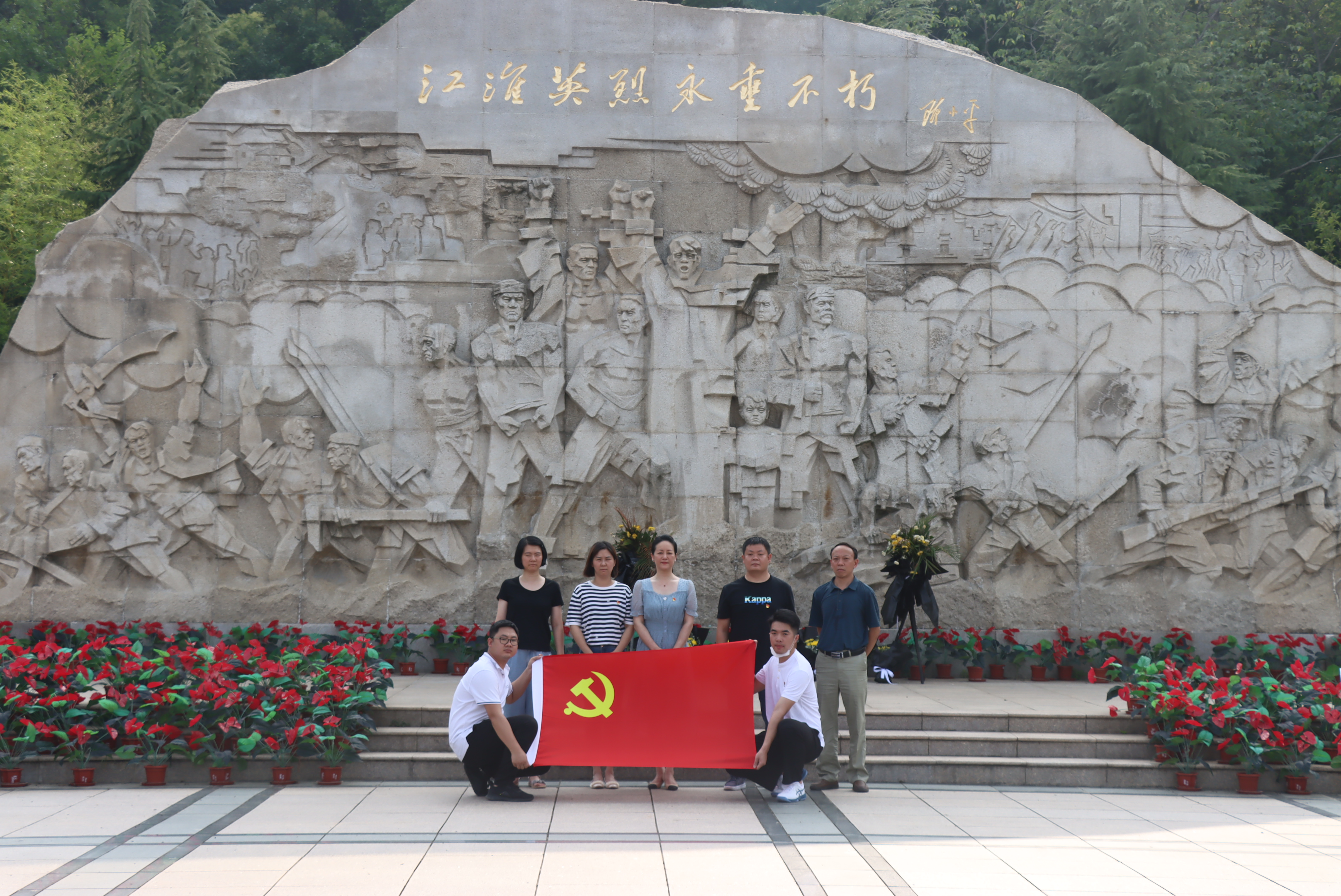 活动中,大家沿着台阶拾级而上,在党支部负责人叶敏的带领下,全体党员面对“江淮英烈永垂不朽”纪念碑重温入党誓词,“我志愿加入中国共产党,拥护党的纲领……”每名党员的誓言,声音洪亮豪迈,字字铿锵有力,表达出为党的事业奋斗终生的决心和忠心。随后,大家在庄严肃穆的纪念碑前集体肃立,并敬献鲜花,以表对烈士的敬意,寄托哀思。