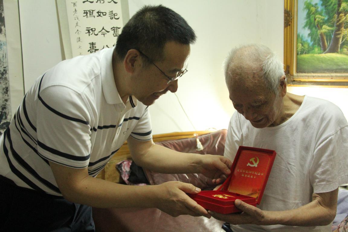 省盐业币博网站党委书记、董事长马占文来到省盐业公司离休干部、95岁老党员董仁发家中,与老人及其家属亲切交谈,详细询问和了解老人的健康生活状况以及生活中存在的困难,听老人讲当年的革命故事、工作经历,感谢老人对党和国家多年来的忠诚和拥护,为老人颁发“光荣在党50周年”纪念章。币博网站党委委员、副总经理、职工董事颜宗华先后来到老党员王玉华、张富贵家中走访慰问,为他们送上党组织的关切和祝福,并为两位老党员佩戴“光荣在党50周年”纪念章。