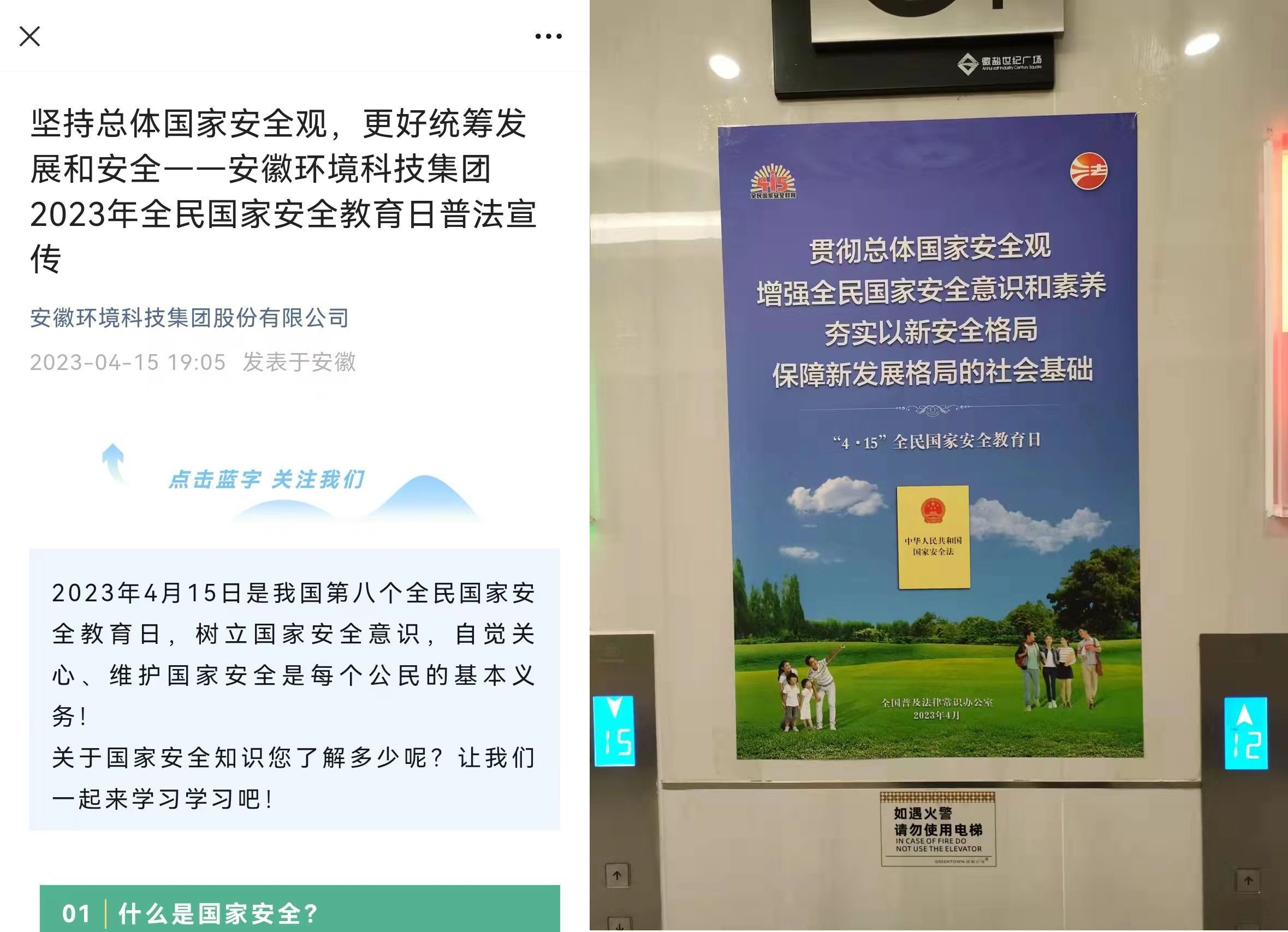 环境公司、发展公司、地产币博网站在微信公众号、官网政策法规平台上传国家安全相关法律法规,在办公场所张贴宣传海报。