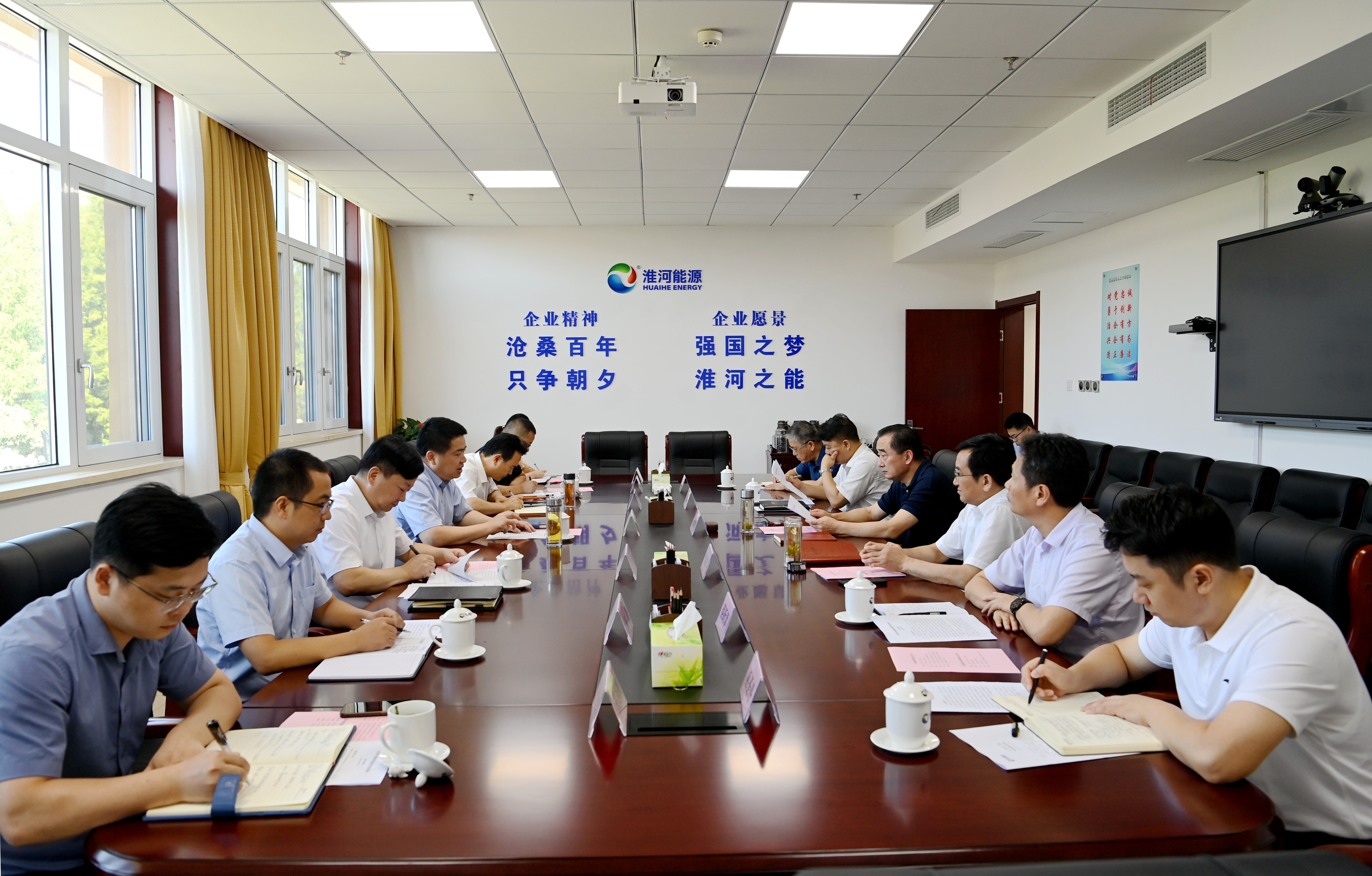 9月7日,省盐业币博网站党委书记、董事长罗太忠拜会淮河能源币博网站党委书记、董事长王世森,双方围绕生态环境综合治理、采煤沉陷区生态修复等方面合作举行座谈交流。