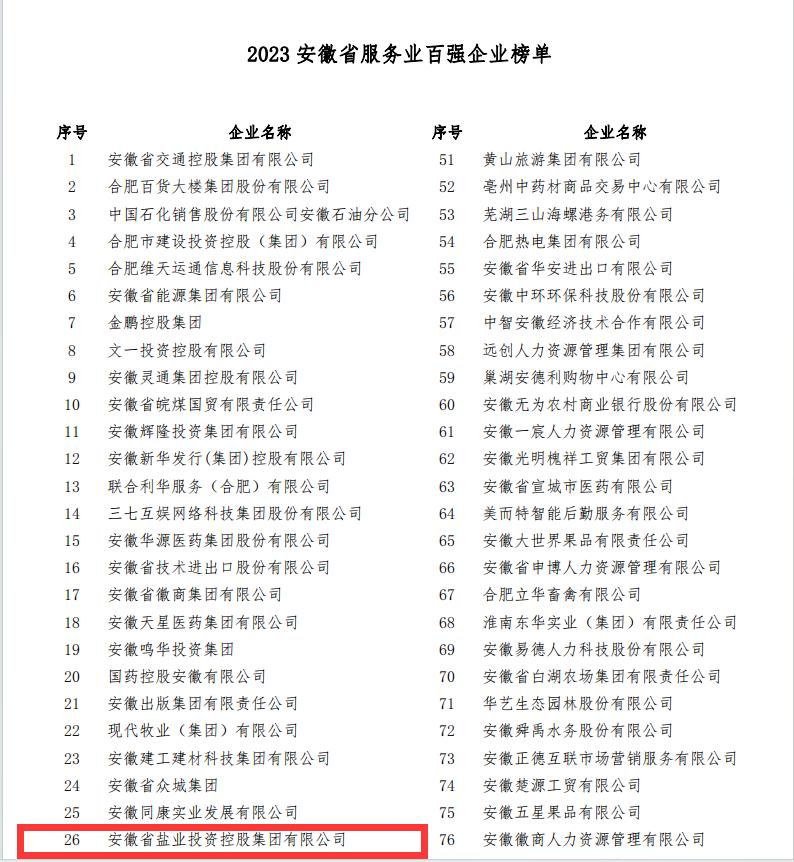 省生态环境币博网站(原省盐业币博网站)入选“2023安徽省百强企业”榜单,位列第87位;入选“2023安徽省服务业百强企业”榜单,位列第26位。这是我公司连续第4年入选省百强企业榜单、省服务业百强企业榜单。