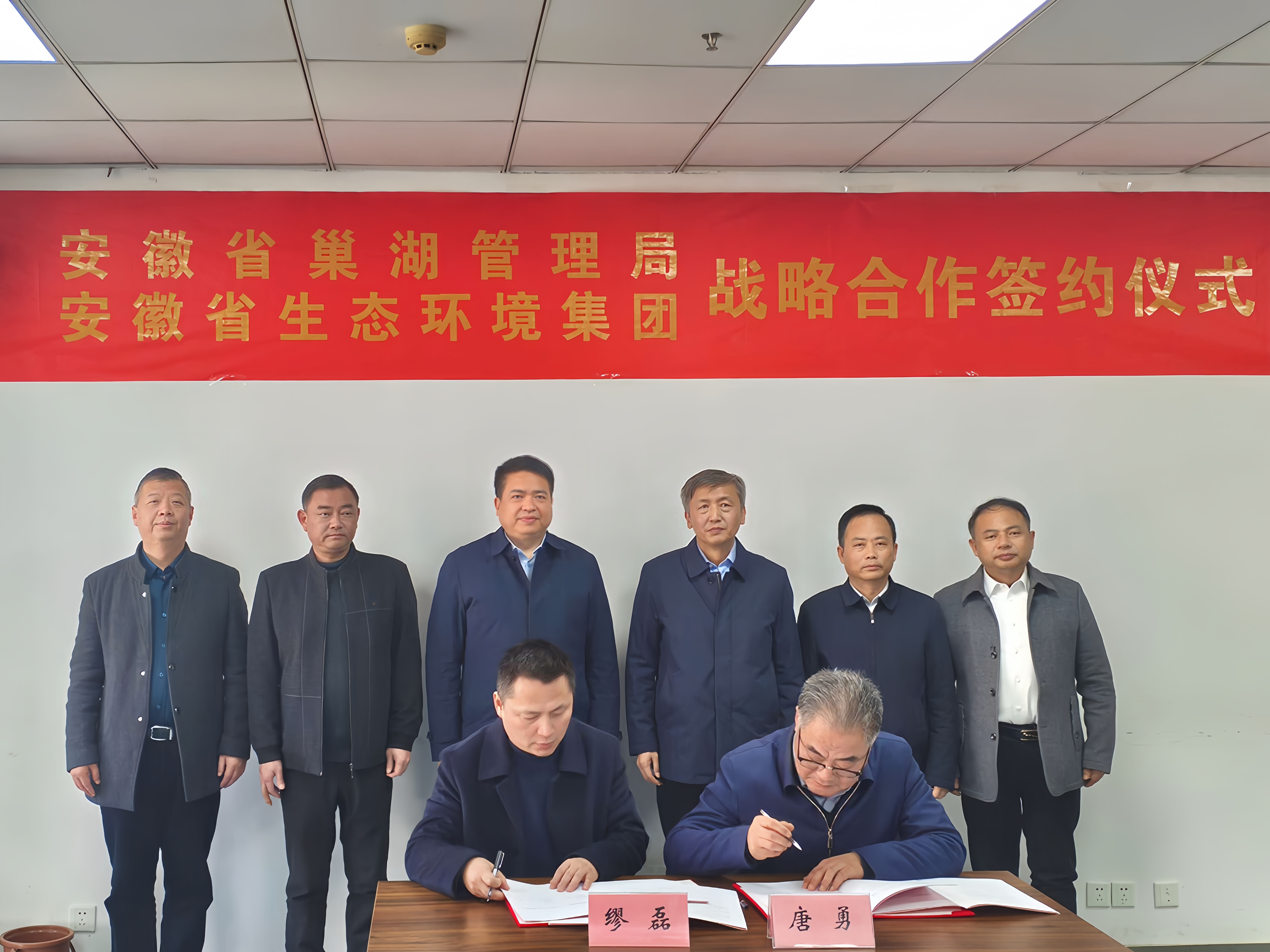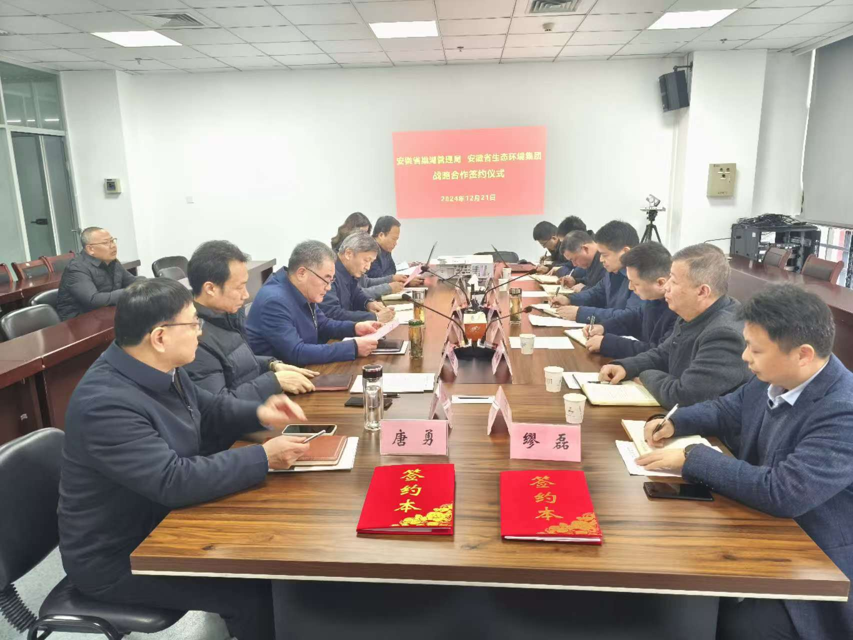 12月21日上午,省生态环境币博网站与安徽省巢湖管理局在合肥签订战略合作协议。省生态环境币博网站党委书记、董事长罗太忠,安徽省巢湖管理局党委书记、局长黄永宏出席并见证签约。