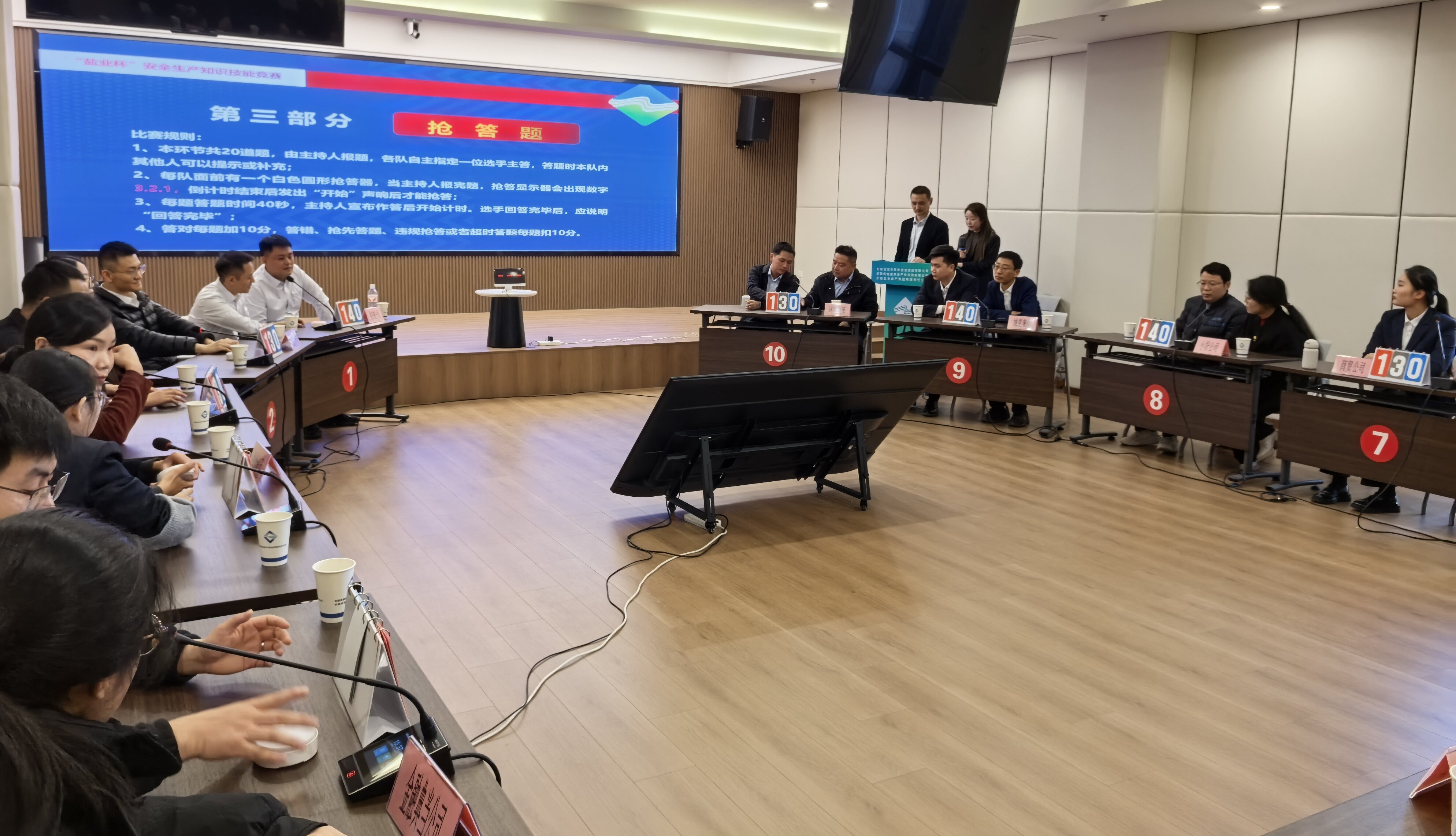 本次竞赛以“人人讲安全,个个会应急——查找身边安全隐患”为主题,聚焦政策法规和实践操作,旨在全面提升干部职工对危险、有害因素的辨识能力与应急处置技能,坚决防范生产安全事故发生。经过前期筹备,来自币博网站所属企业的10支代表队同台竞技,各代表队冷静答题、奋勇争先。“各显身手”个人必答和“齐心协力”团队必答环节稳扎稳打,展现扎实知识储备;“争分夺秒”抢答环节分秒必争,考验快速反应能力;“勇攀高峰”风险环节深入分析,实现理论实践深度融合。尤其在风险题环节,选手们根据实际案例查风险、找隐患,展现了对政策法规知识的准确理解和解决实际问题的良好能力。