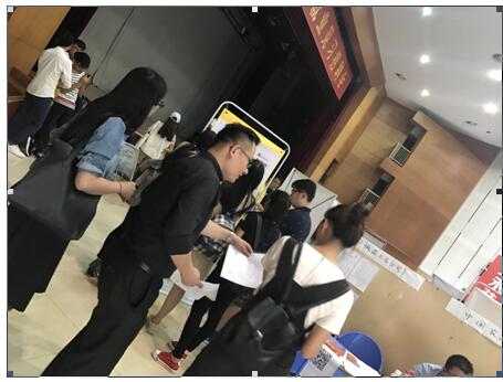 第三站则再次回归校园,电商部受安大邀请,于5月13日上午,参加了安大新区举办的现场招聘会。为了吸引更多的学生前来报名,大家有的去会场外散发招聘单页,有的在场内张贴海报。学生们对省公司发布的招聘岗位兴致很高,前来咨询的同学络绎不绝,很多同学留下了简历,加入了平台兼职群,工作意愿强烈。