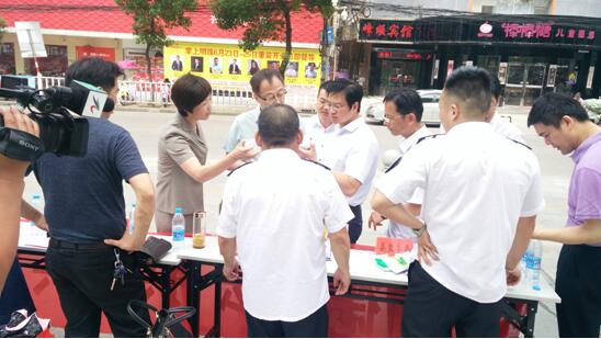 南陵县常务副县长瞿辉陪同检查组一行查看食盐市场和食品安全宣传周活动现场
