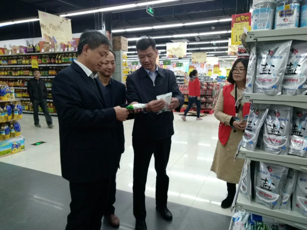 靳海一行在省币博网站公司副总经理邱军的陪同下,首先实地考察了蚌埠华运、合家福两大商超系统“中盐”盐品的市场铺货和销售情况,在蚌埠盐业物流中心仓库实地查看了盐与非盐仓储物流情况。