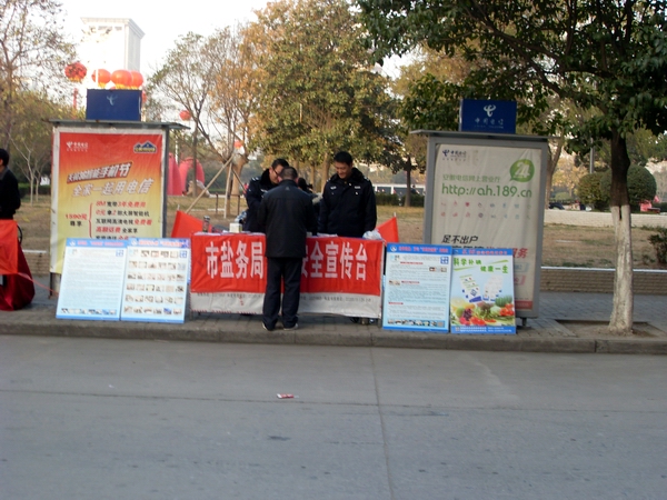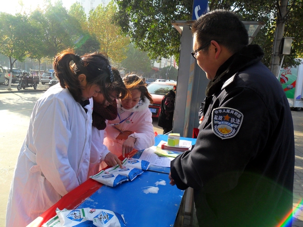 在本次活动中,阜阳市局设立宣传咨询台,宣传展架4个,摆放精心准备的宣传资料和传单,展示近期在市场查获得各类假冒盐品,现场接受市民咨询散发宣传单300余份,向群众宣传普及盐业法规,并推出了现场教市民辨别真假碘盐的活动,咨询台前观看宣传图版和前来咨询的群众络绎不绝,广大市民对国家为确保民生,食盐专营的政策深表理解和支持。市领导对宣传点进行慰问检查时,对阜阳市的盐政管理给予了充分肯定和认可,并鼓励大家再接再厉再创佳绩。