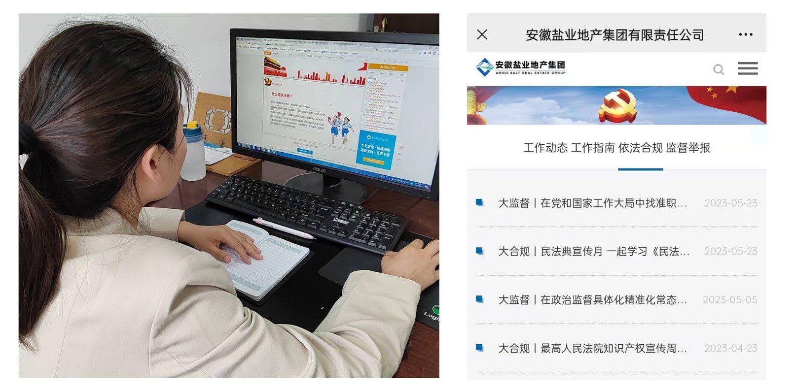 弘德公司、徽盐金融公司开展民法典主题培训,围绕劳动纠纷、婚姻家庭、财产继承、物权产权、社会公德等5大方面,编制《50个法律问题及解答》,同时组织员工观看《民法典学习公开课》,提高职工群众法律素养。弘德公司将民法典宣传深入所属汽车销售店,运用目视化阵地拓展宣传成效。