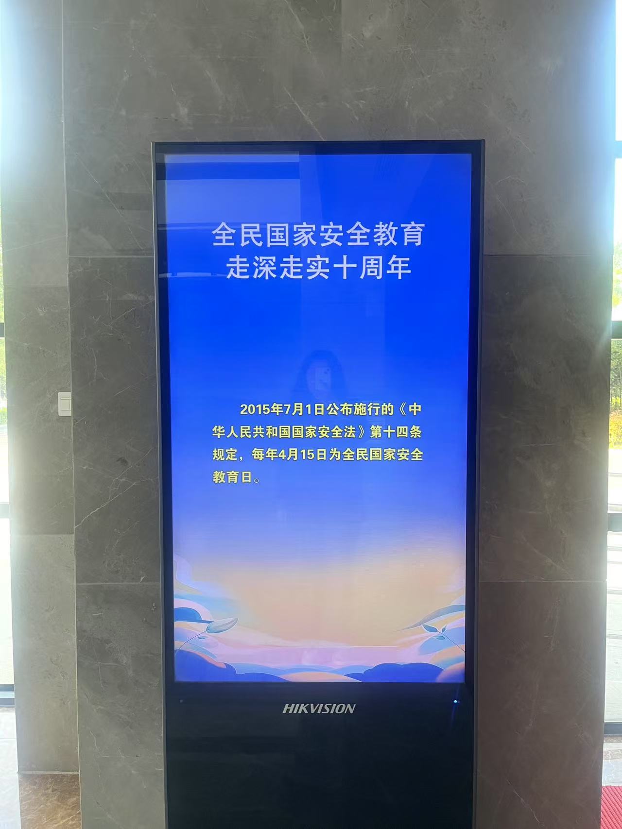 环境科技币博网站在办公区域张贴“全民国家安全教育 走深走实十周年”主题海报,以醒目图文传递国家安全核心要义;运用LED显示屏播放“4.15全民国家安全教育日”PPT,一楼大厅连续滚动播放宣传海报及警示案例,覆盖员工日常办公动线。