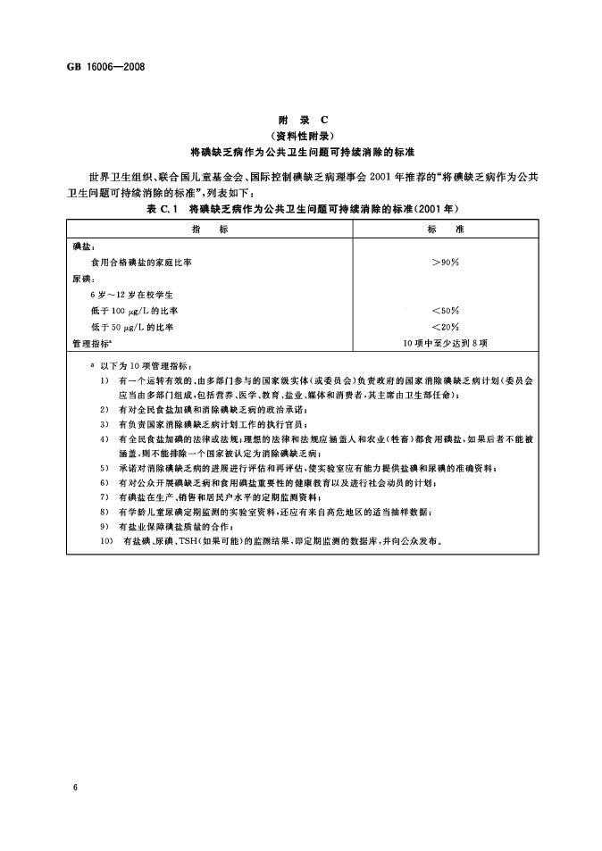 卫生部国标委发布GB16006-2008碘缺乏病消除标准