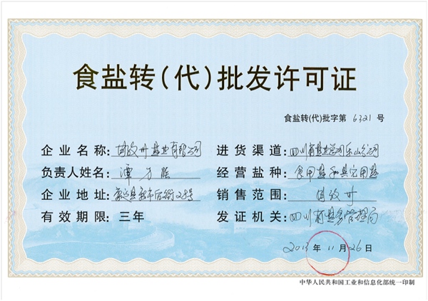 待解持有《食盐批发许可证》的食盐定点生产企业销售渠道: