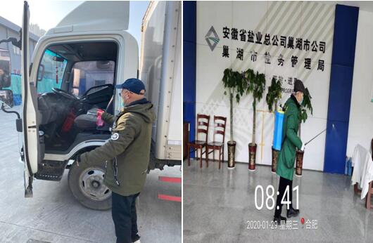 蚌埠公司、巢湖公司对配送车辆、办公区进行消毒。