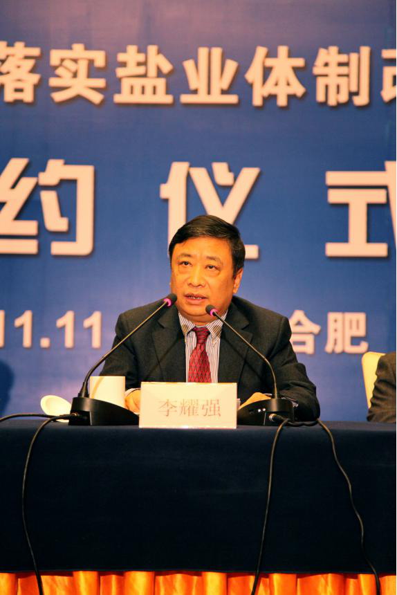 安徽省盐业总公司党委书记、总经理詹先豪在会上发言