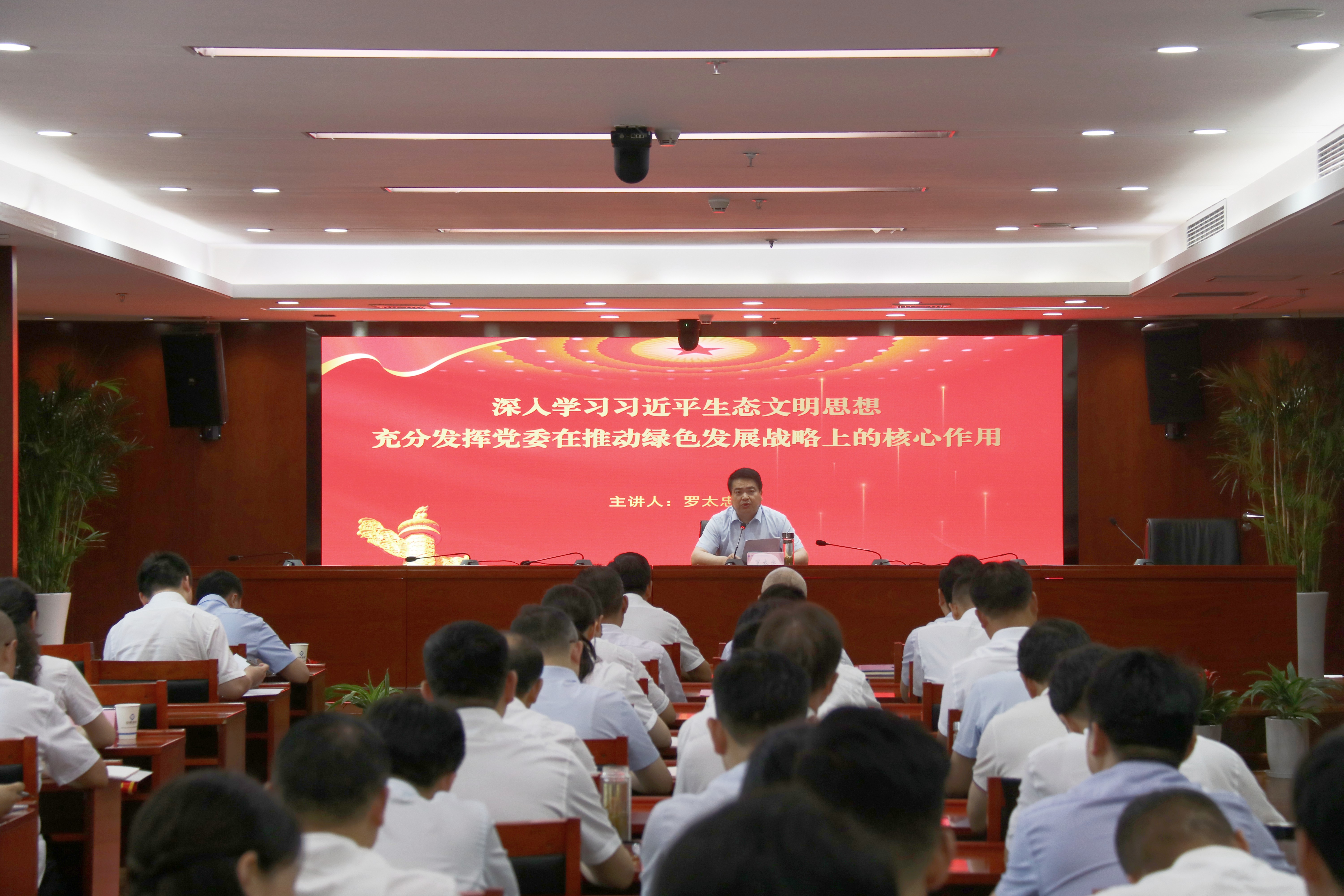 罗太忠以“深入学习习近平生态文明思想,充分发挥党委在推动绿色发展战略上的核心作用”为题作专题党课报告,从深刻理解和把握习近平新时代中国特色社会主义思想所蕴含的观点立场方法、深刻理解和把握党的二十大的战略部署和目标任务、深刻理解和把握习近平总书记关于本地区本部门本领域的重要讲话、重要指示批示精神以及币博网站公司未来发展的战略和路径等方面,详细阐述了习近平新时代中国特色社会主义思想理论的精髓,明确了币博网站公司转型生态环境产业的具体路径,进一步统一了思想、凝聚了共识。罗太忠在报告中指出,党的二十大将“生态环境保护发生历史性、转折性、全局性变化”作为新时代十年伟大变革之一,将“促进人与自然和谐共生”作为中国式现代化本质要求的重要内容。要深刻领会习近平生态文明思想和习近平总书记关于绿色发展的重要论述,充分把握贯彻落实绿色发展战略的重大意义,进一步增强推动币博网站公司转型生态环境产业的使命感、责任感和紧迫感。要学深悟透习近平新时代中国特色社会主义思想,更好运用贯穿其中的立场、观点、方法指导推动工作,进一步提升政治能力、思维能力、实践能力,把习近平总书记关于推进生态文明、建设美丽中国的指示精神落到实处。