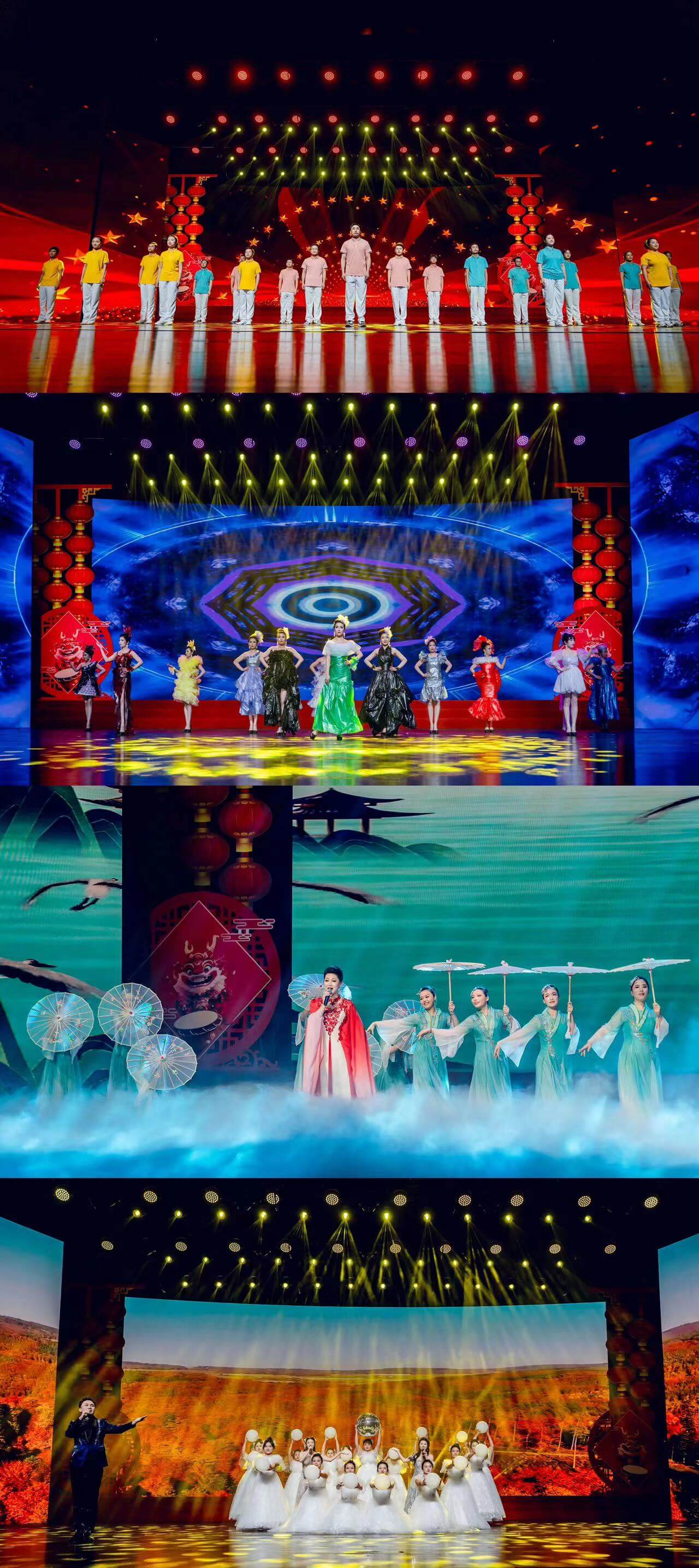 演出精彩纷呈,高潮迭起,歌声、乐声、掌声烘托出热烈的喜庆氛围。最后,联欢会在全场同唱《再一次出发》歌声中落下帷幕。