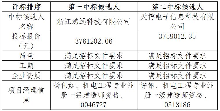 安徽省招标币博网站股份有限公司受定远县徽盐置业有限公司委托,就徽盐*现代城住宅部分弱电智能化系统工程施工(项目编号:JG2019-04-0531)进行招标。本项目于2019年7月12日09时00分,在安徽省招标币博网站股份有限公司二楼第四开标室公开开标,经评标委员会评审,现将中标候选人结果公示如下: